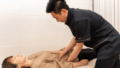 施術では、筋膜リリースと内臓調整を中心に、頭蓋骨のバランスも確認。