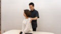 施術が終わり、ベッドから起き上がったK様は、まず胸を張るように促されました。「いいじゃないですか、開いてきたね」という施術者の言葉が印象的でした。